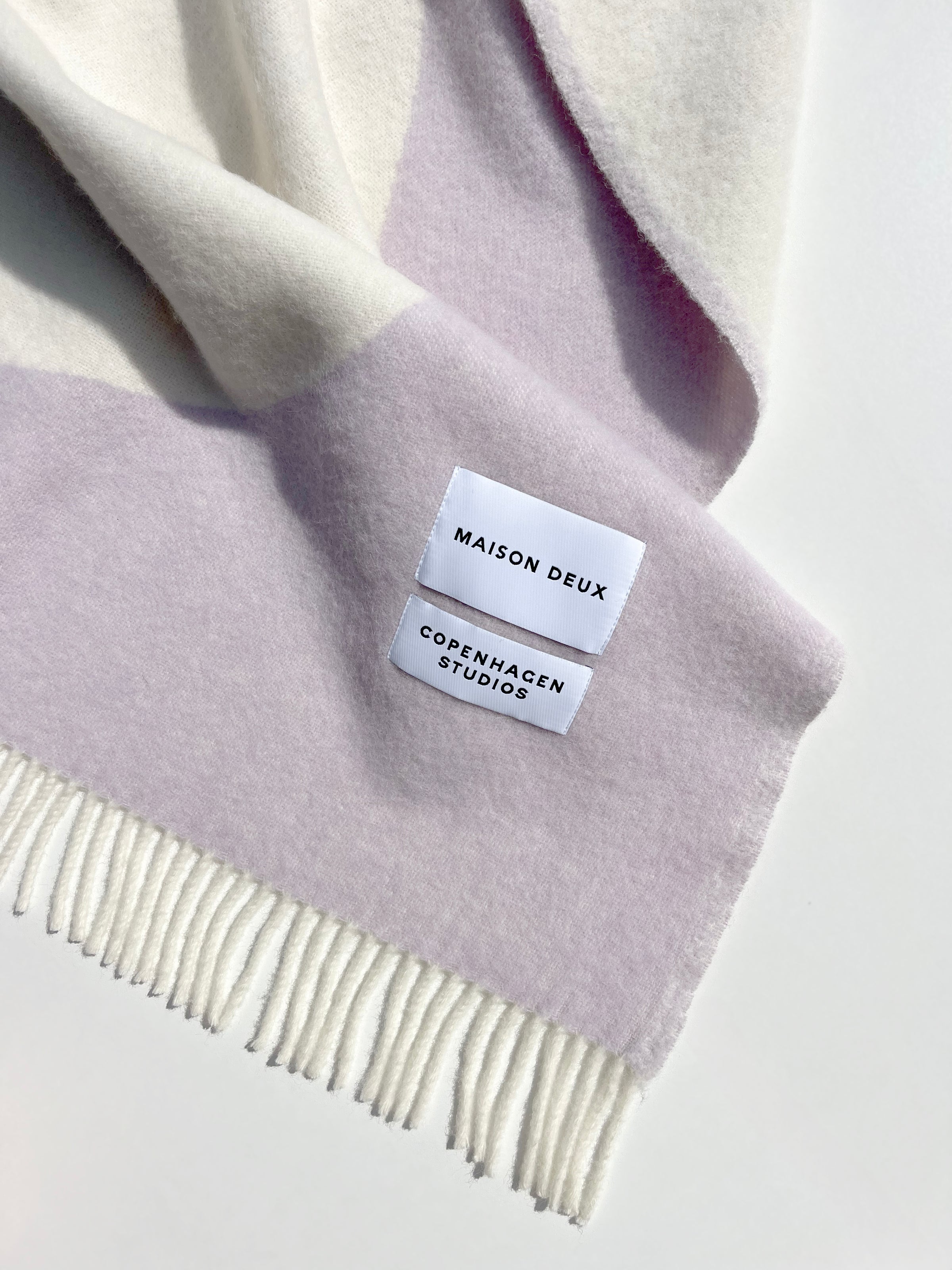 Copenhagen Studios x Maison Deux present the Hygge Blanket, a collaboration that blends Scandinavian minimalism with a playful twist. The Hygge Blanket Soft Lilac is jacquard-woven from 100% New Zealand wool, resulting in a thick, premium feel finished with clean stitched edges. A wink of humour appears in the subtle “butt print in the snow” motif — a nod to cozy comfort with character.
