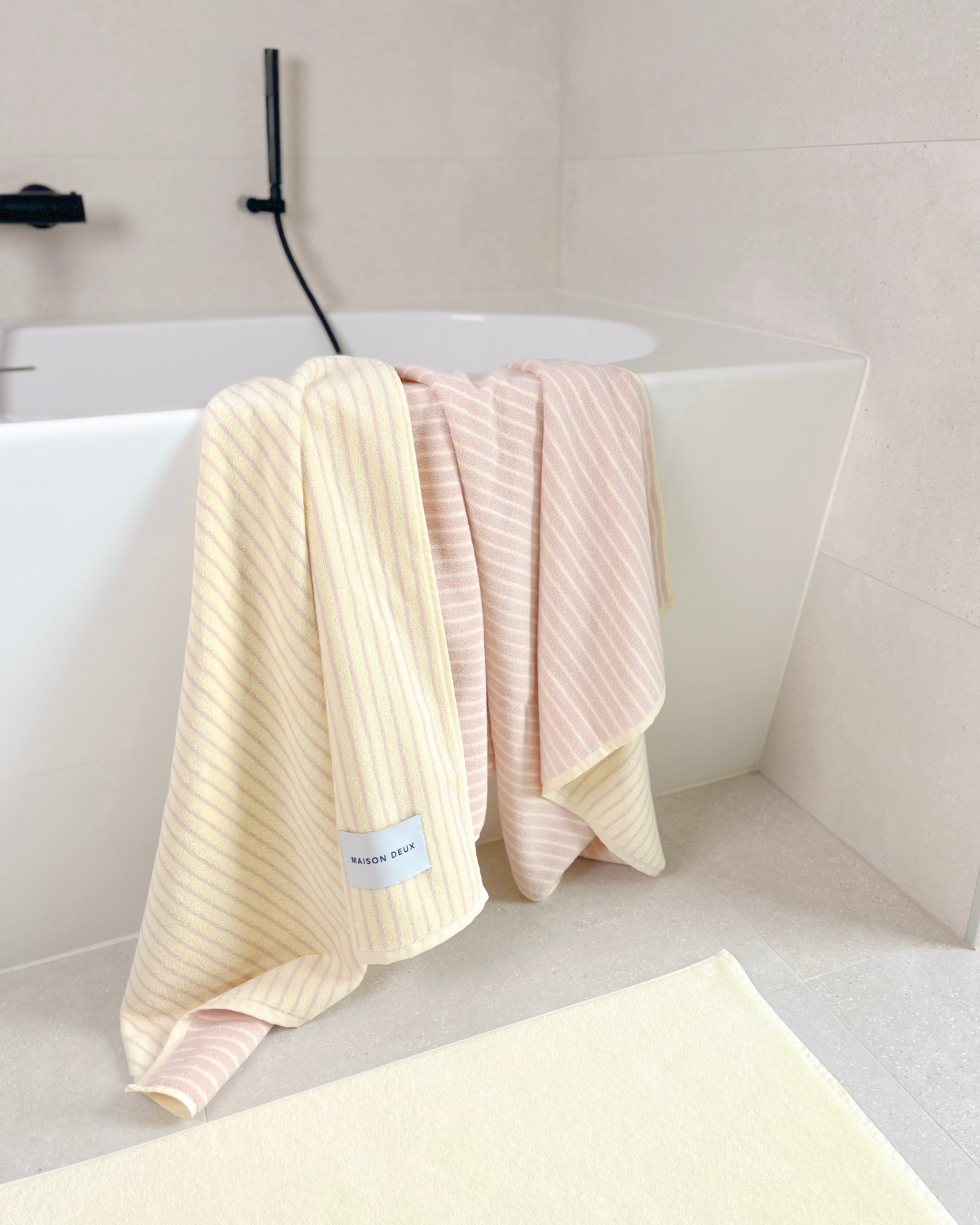 Meet the Gradient Towel Sage Vanilla. A smooth fade from sage to vanilla that brings a fresh look to your bathroom. Made from 100% organic terry compact combed cotton in a dense 550 GSM quality. GOTS-certified, absorbent and designed to be seen. Because towels deserve a glow-up too.