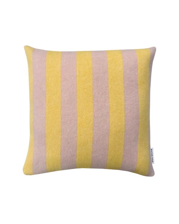 The Candy Wrap Cushion XL Lilac Green is woven in Lithuania and certified with the Woolmark and OEKO-TEX label. Wool is 100% biodegradable and therefor does not contribute to microplastic pollution in our oceans or on our land. Wool is a circular fibre. It's 100% natural, 100% renewable and 100% biodegradable.