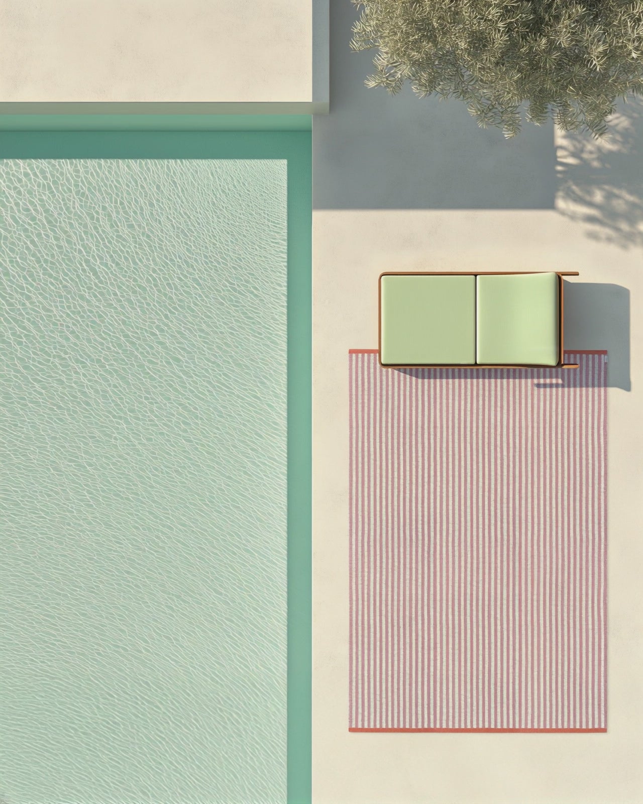 The Stripe Rug Grass 170 x 250 cm is a high-quality plastic rug, woven in a vinyl foil to provide a very durable rug. This makes it perfect for in- and outdoor use such as your terrace hallway, kitchen or bathroom. The Stripe Rug Sunburst is Jacquard-woven in Sweden.